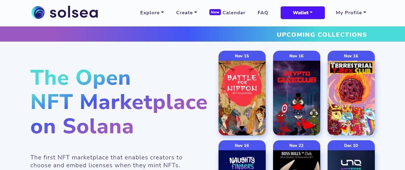 Solsea hat sich durch die Erweiterung seines Marktplatzes um Funktionen beliebt gemacht, die auf anderen Marktplätzen nicht zu finden sind, wie z. B. bei solanart, das nur begrenzte Kollektionen zulässt. Im Gegensatz dazu erlaubt SolSea seinen Nutzern, ihre Dateien hochzuladen, um direkt eine NFT oder eine ganze Sammlung auf seiner Plattform zu erstellen.