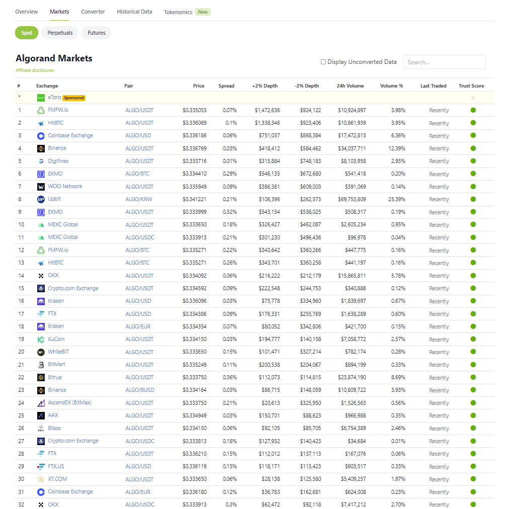 En esta guía, hemos visto como puedes comprar Algorand con Binance, pero existen otras plataformas para poder comprar esta criptomoneda. Para saber dónde puedes comprar Algorand, es tan simple como ir a coingecko o coinmarketcap y buscar la criptomoneda.