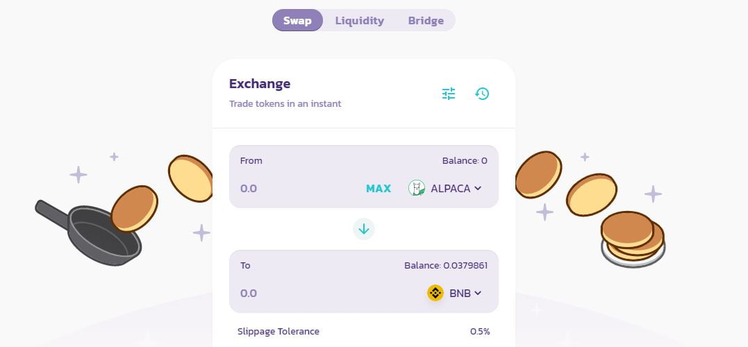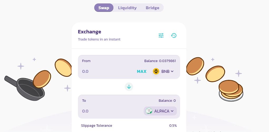 Si ya tienes en tu wallet de metamask Binance Coin para pagar por las comisiones, inferiores a un dólar, simplemente vas a tener que dirigirte a pancakeswap, y copiar el contrato de Alpaca Finance para poder encontrar el token. Esto puedes encontrarlo en Coingecko buscando Alpaca Finance o puedes copiar el contrato de la red de Binance justo debajo: