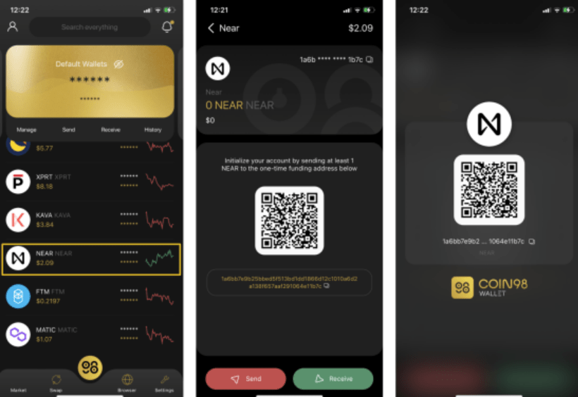 C98 ist eine der meistgenutzten Geldbörsen, und Sie können das Near-Netzwerk ohne Probleme nutzen. Auch wenn Sie eine andere Geldbörse mit dem Near-Netzwerk verwenden, sollten Sie keine Probleme haben und die Bedienung ist die gleiche.