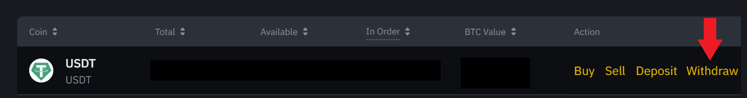 Um zu überprüfen, ob wir bereits usdt in unserer Waage haben, können wir zum Hauptbedienfeld gehen. Mit den usdt in unserem Kontostand, um sie in kucoin zu verschieben, müssen wir zu Brieftasche, Spot Brieftasche gehen und für usdt suchen. Klicken Sie hier auf „Abheben“ oder „Auszahlen“, wodurch Sie zum nächsten Panel gelangen.