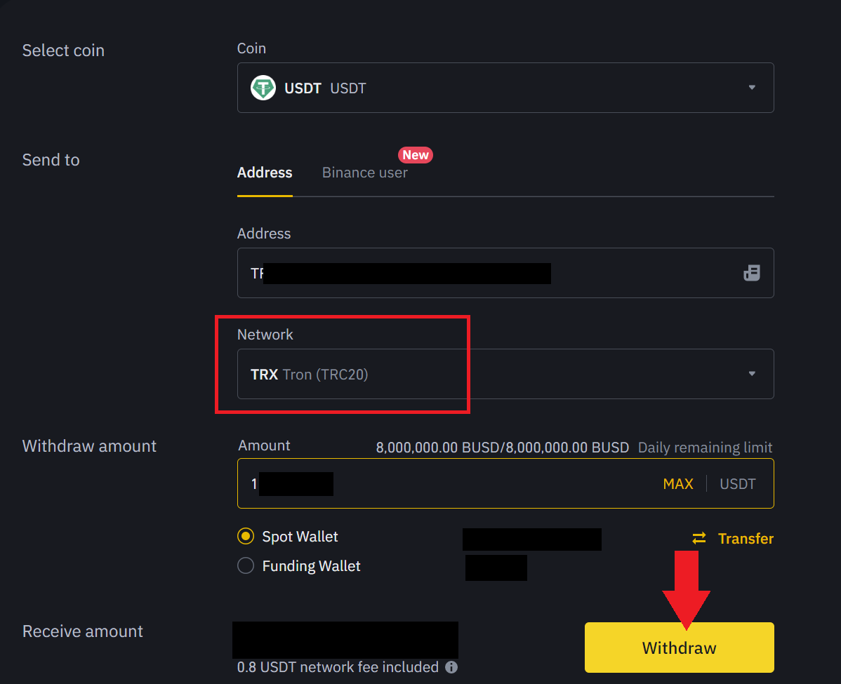 Kopieren Sie die Adresse und fügen Sie sie in binance ein. Wählen Sie dasselbe tron trc-20-Netzwerk aus, geben Sie den Betrag ein, den Sie senden möchten, und bestätigen Sie die Transaktion mit Ihren E-Mail- und Mobilcodes. Sie sehen die Provision, die im Falle des tron Netzwerks 1 Dollar beträgt. Vor allem, wenn Sie die Adresse in kucoin kopieren, stellen Sie sicher, dass Sie das trc-20 tron Netzwerk und das gleiche in binance angeben, um Fehler zu vermeiden.