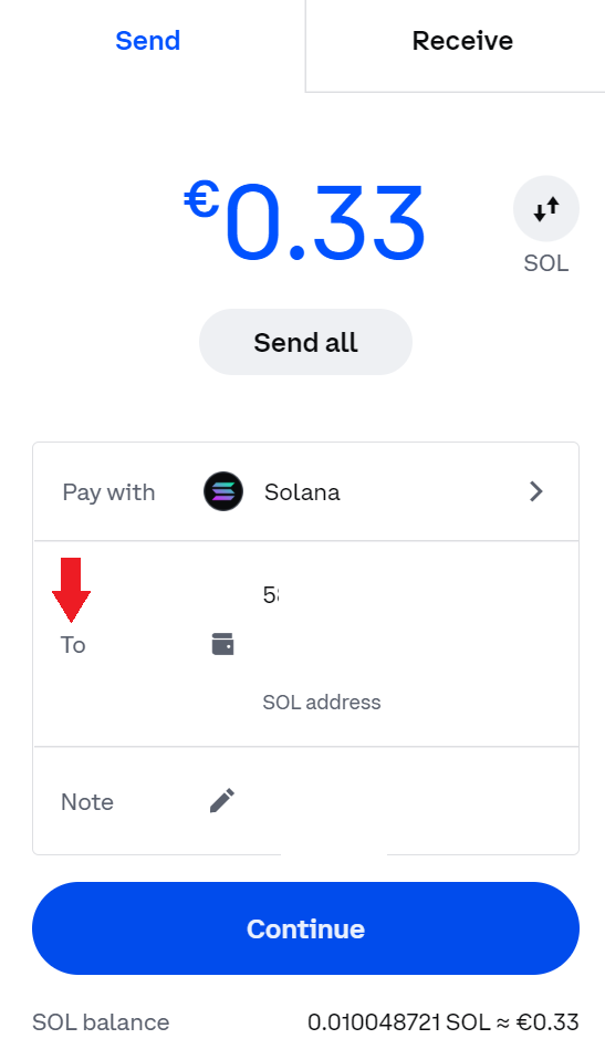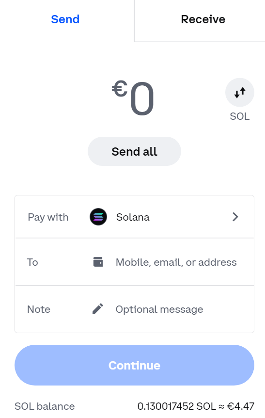 Now it is time to look at the other way. In this case, we will also assume that we have SOL in our Coinbase balance. In case you have another cryptocurrency and you don’t know how to switch from that one to SOL, you can check this guide.