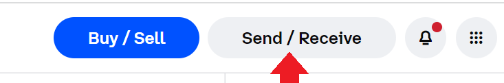 Now, we will be in the kucoin withdrawal panel, and we will have to go to coinbase to know to which address to send our tokens. So once in coinbase, click on send/receive. And then click on receive.