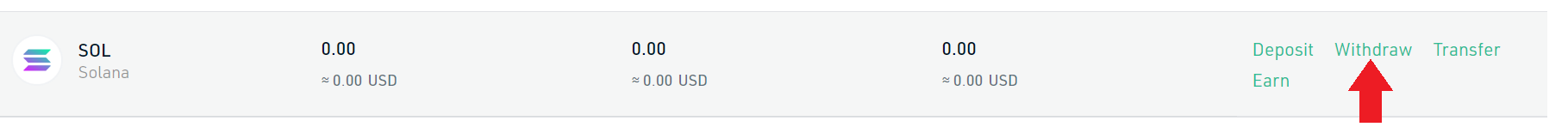 With SOL in our balance, we will go to the main interface of kucoin and search for SOL. Once you find it, click on withdraw.