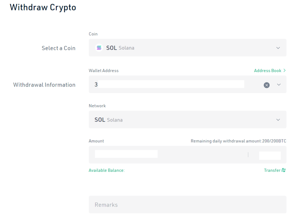 Let’s assume that you already have SOL in your kucoin account, if not, exchange your cryptocurrency you want to withdraw for SOL. If you don’t know how, you can see here a guide on how to buy and sell cryptocurrencies.