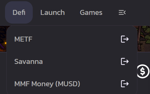 Also, in games we find different games that you can play on other sites. In DEFI, there are linked different sites with different farming or staking strategies within the Cronos network, which are related to MM Finance. And finally, we also find platforms for loans or yield farming with leverage that you can find on the right hand side of the menu, which are other platforms linked to MM Finance.