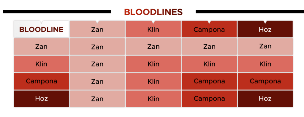 The bloodlines we found Sickle as the rarest. So you will need two Sickles, in order to get another Sickle. And if you breed any other bloodline with a zan, you will always get a zan. You can see below a chart as it illustrates the different combinations of bloodlines.