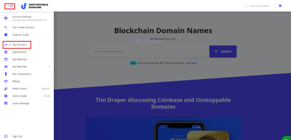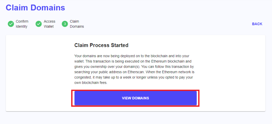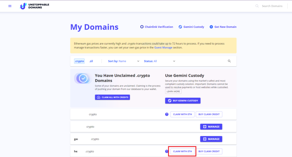 9. The .Crypto claim process will now begin, so we will click on view domains.