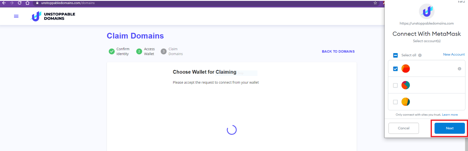 Now that you have paid for your Unstoppable domain, it’s time to claim it with your MetaMask wallet.