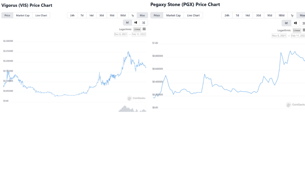 The play to earn format of the game is quite similar to Axie. In the sense that there are two game tokens. The governance token, which is PGX, which would be the equivalent of AXS in Axie. And on the other hand, the reward token, which is VIS, equivalent to what would be SLP in Axie.