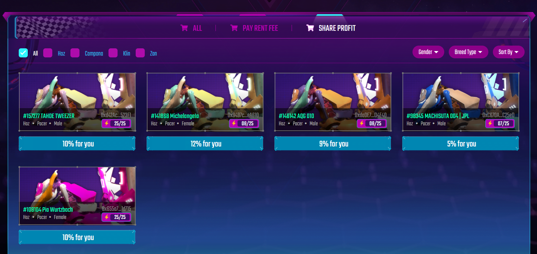 You can go to the Marketplace and try to rent a horse for free. The problem is that they run out very quickly, so it is very difficult if you don’t talk to a manager first. Usually, the split is 80-20 between the manager and the grantee. Even if you only get 20%, you can earn more money than in Axie as a scholarship holder. And the game is very simple, you just have to press a few buttons every few hours. Watch your horses run, and be lucky to win as many times as possible.