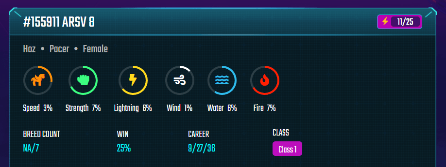 While this can be a bit confusing, this doesn’t matter in terms of racing. The only thing that really matters is the winning percentage that you can see before you buy the horse. You will be able to see that most have a win rate or winning % of between 20 to 25%. With this, you can expect to win about 5 races a day out of the 25 races you can do each day.