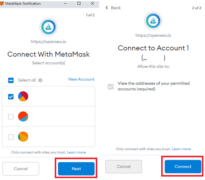 3. Click on next to connect your MetaMask wallet and click on connect.