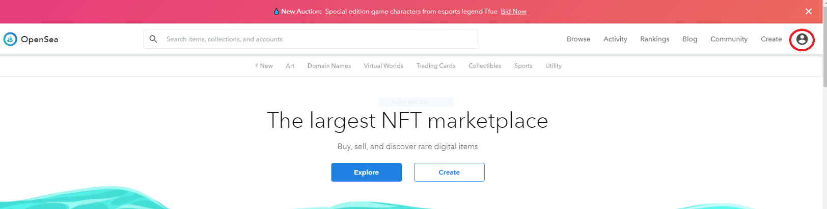 1. Let’s go to Opensea and click on my account in the top right corner.