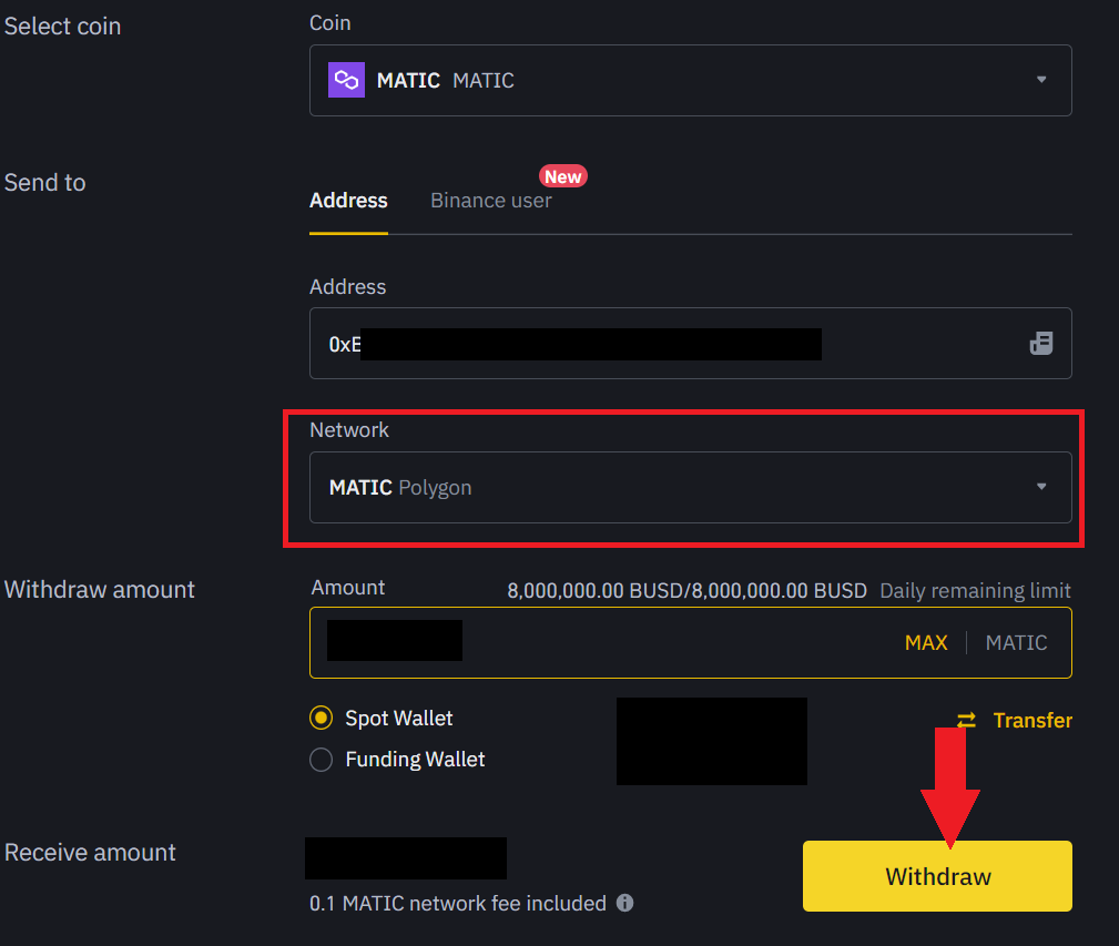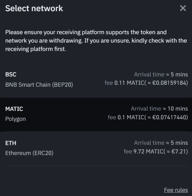 From Binance to Metamask on the Polygon network