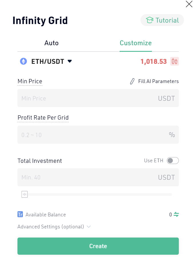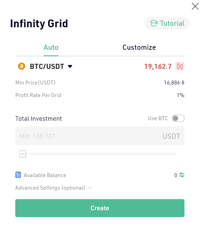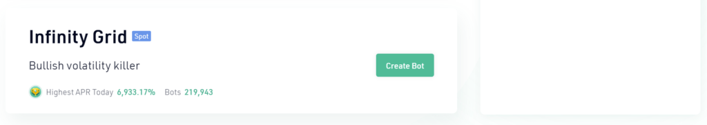 The infinity grid is a strategy derived and based on the spot grid, which is designed to avoid missing the moment when cryptocurrencies start to rise, a bull market.