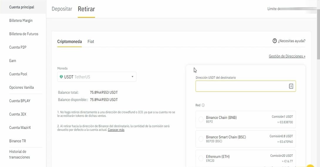 Avec l’etherum sur votre compte, vous devez aller dans votre portefeuille, et cliquer sur cette crypto-monnaie. Vous verrez un bouton de retrait, ici vous devez indiquer l’adresse de votre porte-monnaie metamask, le montant et le réseau. Le réseau que vous devez utiliser ERC-20. Pour connaître l’adresse de votre porte-monnaie metamask, il suffit d’ouvrir votre porte-monnaie, et en haut vous verrez l’adresse et cliquez pour la copier. Copiez et collez le dans Binance. Confirmez que tout est correct et vous verrez apparaître les frais de retrait. Confirmez avec les codes de confirmation, et vous l’aurez dans votre portefeuille, bien que cela puisse prendre quelques minutes pour arriver.