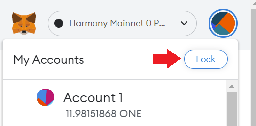 Pulsa arriba a la derecha en la redonda. Aquí, en la parte superior derecha podrás ver un botón con lock, pulsa allí y de esta forma tan simple, tendrás tu wallet de Metamask bloqueada. Con la contraseña para indicar si quieres volver a utilizarla.