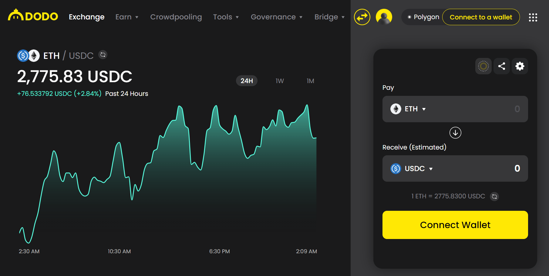 DODO es una plataforma de intercambio descentralizada impulsada por el algoritmo Proactive Market Maker (PMM). Cuenta con grupos de liquidez altamente eficientes en términos de capital que apoyan la provisión de un solo token, reducen las pérdidas impermanentes y minimizan el deslizamiento para los operadores. La plataforma de negociación también ofrece SmartTrade, un servicio descentralizado de agregación de liquidez que dirige y compara varias fuentes de liquidez para cotizar la tasa de intercambio óptima entre dos tokens cualesquiera.