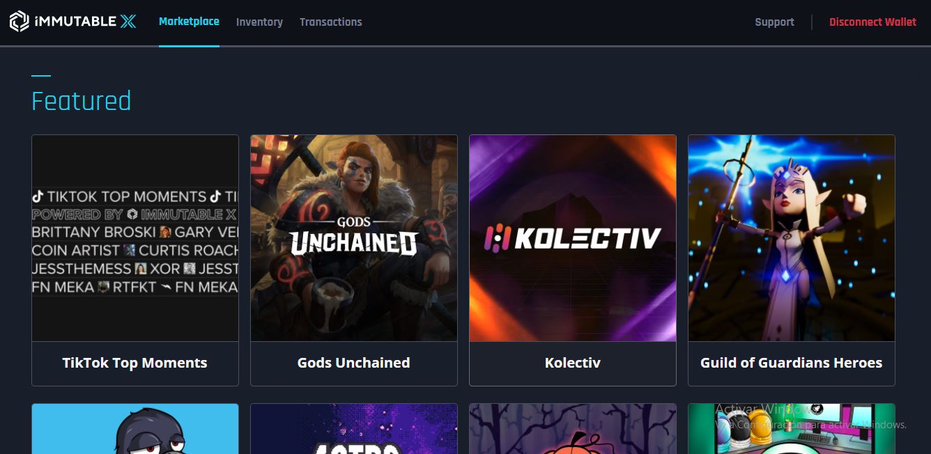 Es importante destacar que Immutable X funciona como muchos Marketplace, donde se listan colecciones de NFT’s y solo puedes comprar y vender las colecciones que se encuentran dentro de la plataforma. A diferencia de opensea, donde cualquiera puede subir su NFT y venderlo.
