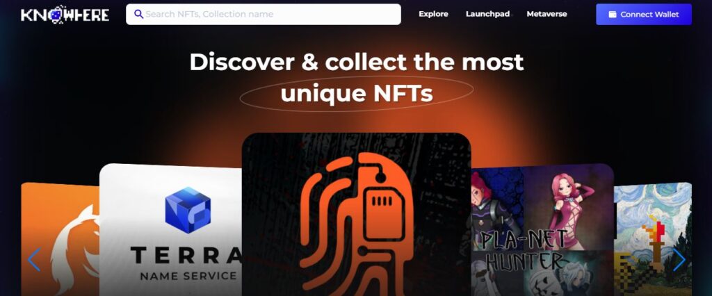Knowhere es un Marketplace de NFT’s en la red de Terra, centrado en colecciones exclusivas, y que cuenta con las colecciones con más volumen y más populares de esta red. Además de ser uno de los marketplaces con más volumen diario en compra y venta de NFT’s en Terra.
