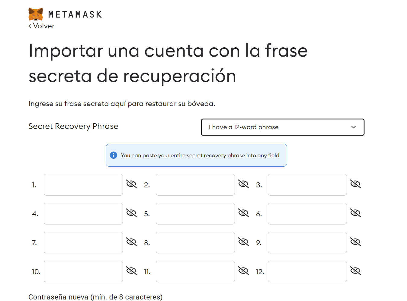 Restaurar Metamask con Frase de Recuperación