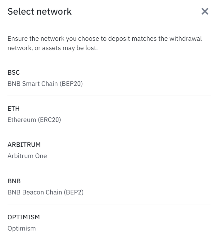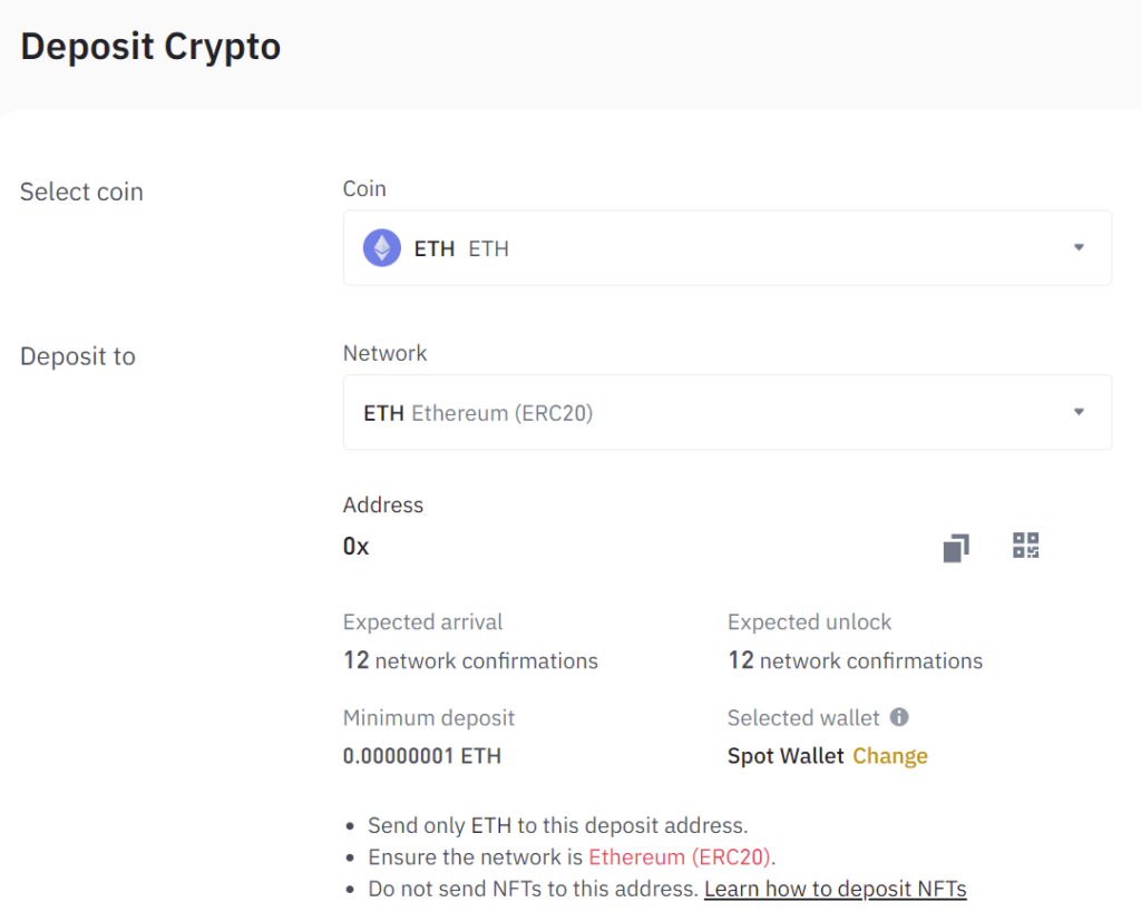 Depositar Ethereum en Binance