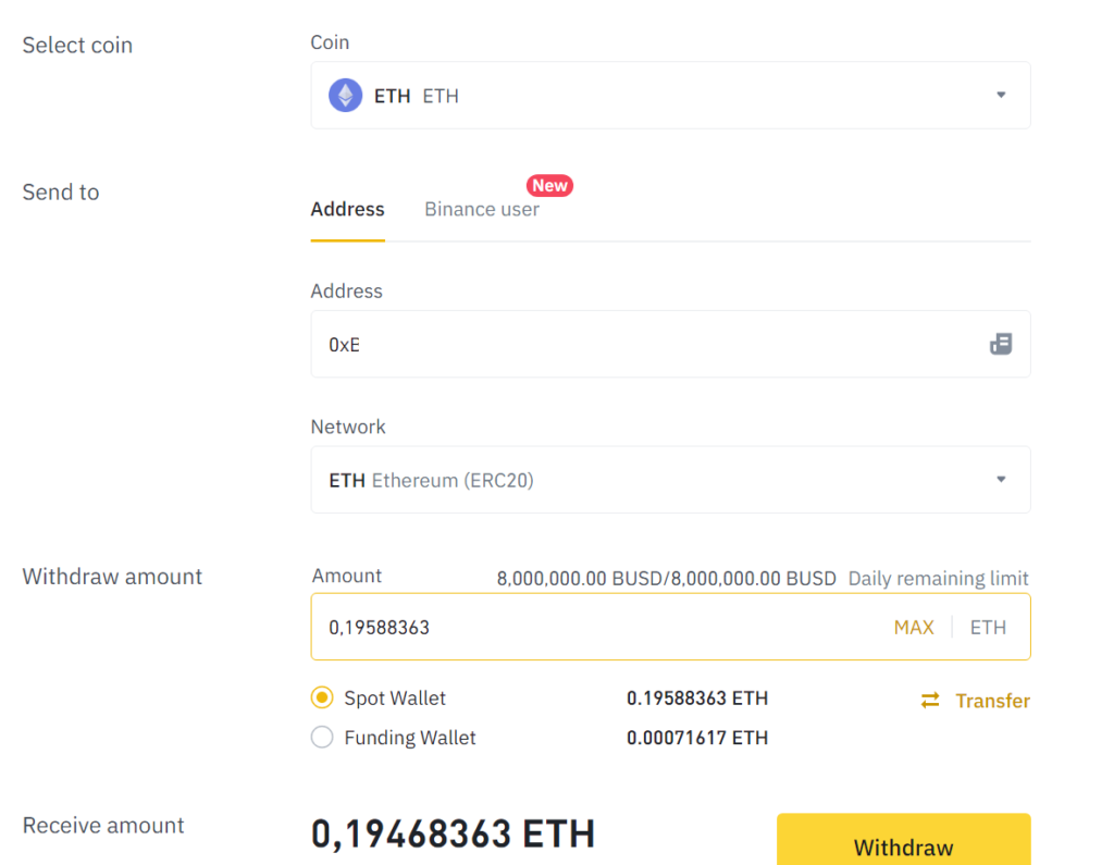 Por último, queda indicar la cantidad que queremos retirar de ETH.