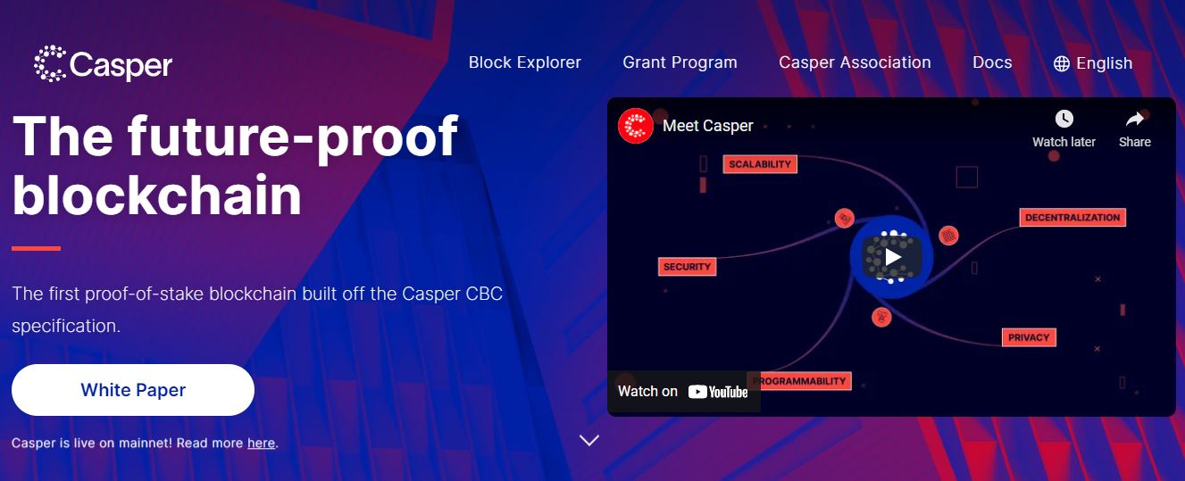 La rete Casper è la prima blockchain proof-of-concept dal vivo costruita dalla specifica Casper CBC. Casper è progettato per accelerare l’adozione della tecnologia blockchain da parte delle imprese e degli sviluppatori oggi ed evolvere per soddisfare le esigenze degli utenti in futuro.