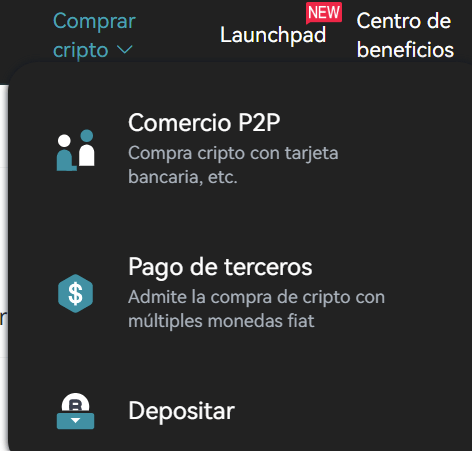 Andremo ad acquistare criptovalute e pagamenti di terze parti. Potrete vedere anche l’opzione di trading P2P, ma di solito si tratta di un’opzione costosa e rischiosa, poiché avviene tra due utenti e alcuni potrebbero essere truffatori. Quindi eviteremo questa opzione.