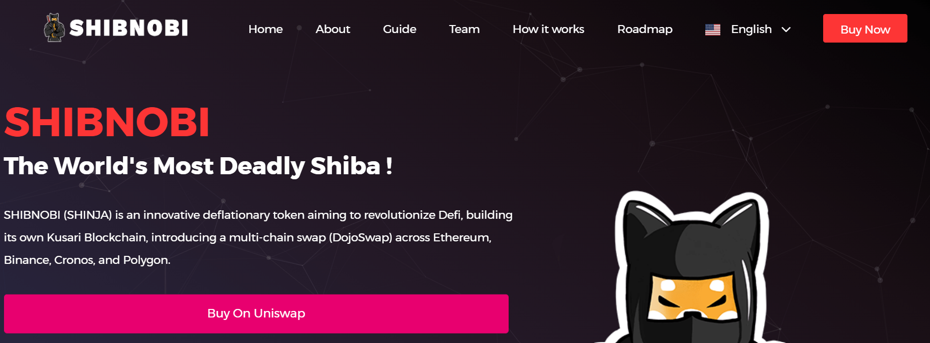 SHIBNOBI (SHINJA) é um sÃmbolo deflacionário inovador que visa revolucionar a Defi através da construção da sua própria cadeia de blocos Kusari, introduzindo uma troca multi-cadeia (DojoSwap) através do Ethereum, Binance, Cronos e Polygon.